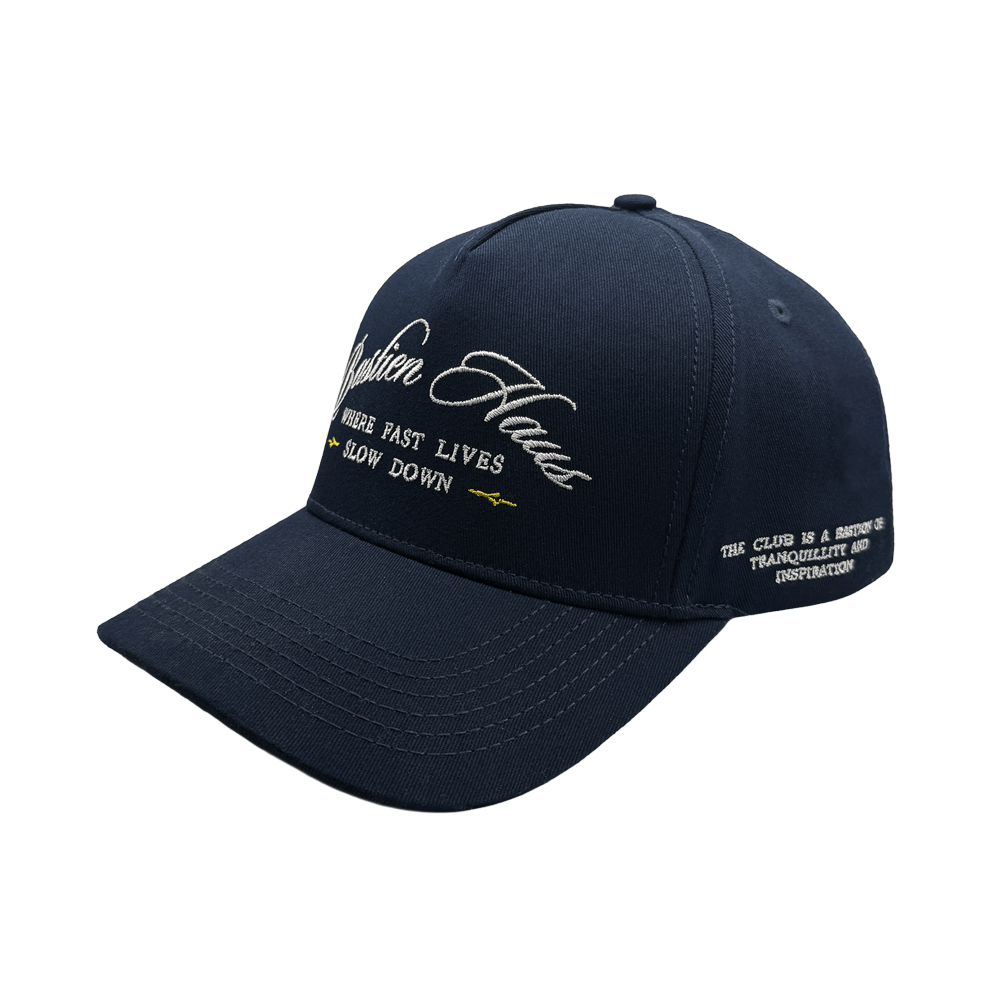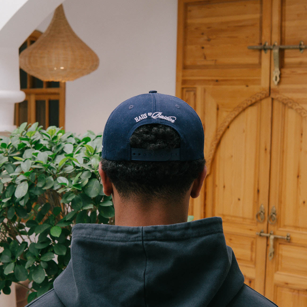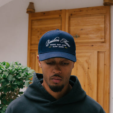 Cotton canvas twill cap in a boxy silhouette. Featuring the Bastien Haus signature and creed embroidered on the side and front panels.